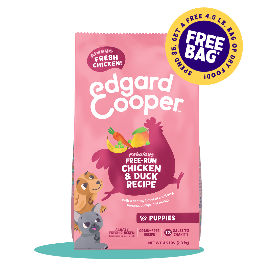 *Get a free 4.5lb. bag of Edgard & Cooper dry dog food when you spend $5. Limit 1 per customer. Valid on all recipes in 4.5lb. bags, while supplies last.